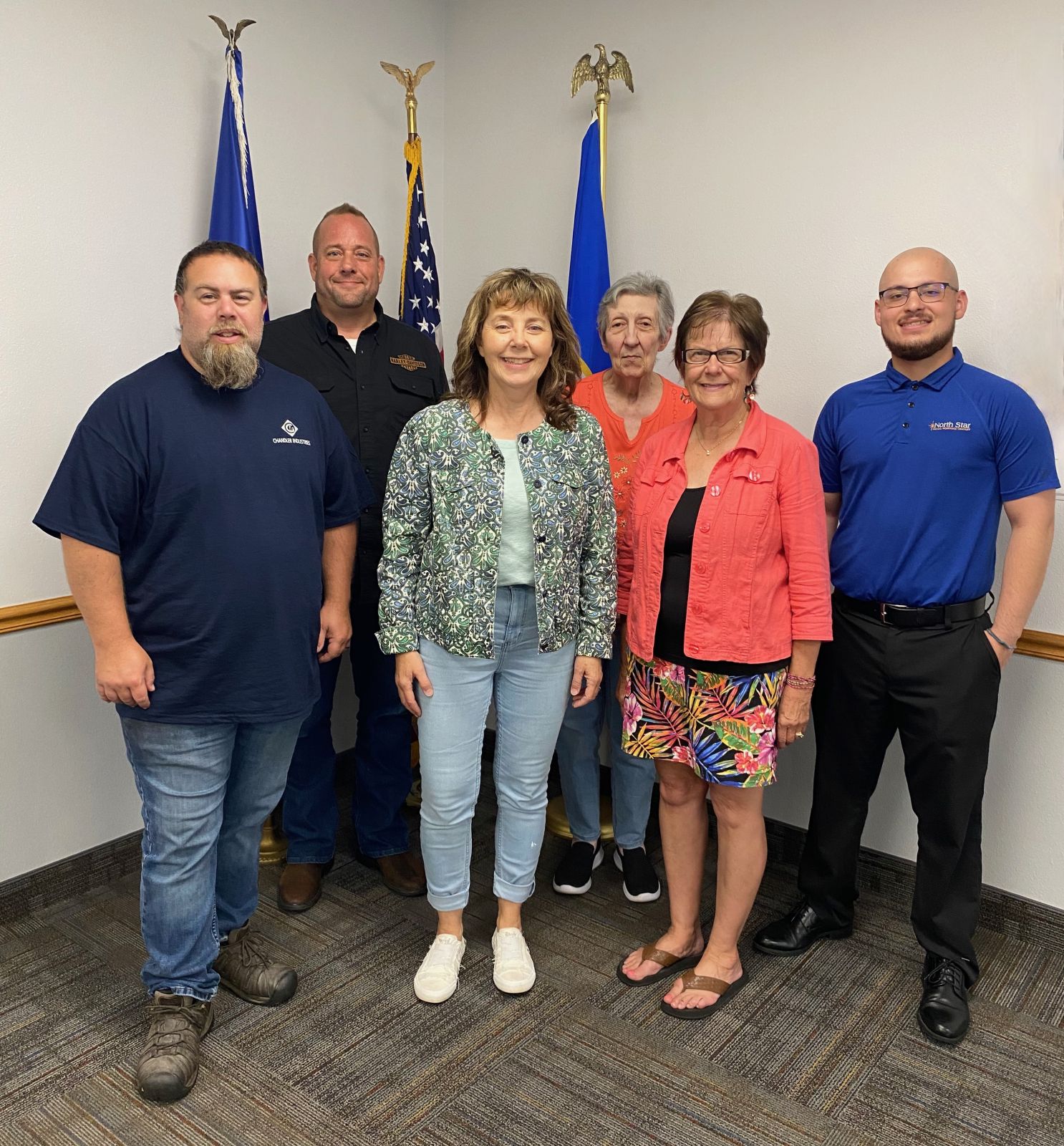 Front row: Dallas Nelson (Vice-Chair), Terri Jo Peery (Chair), Mary Schmidt (Secretary) & Kevin Berrios (Commissioner)
